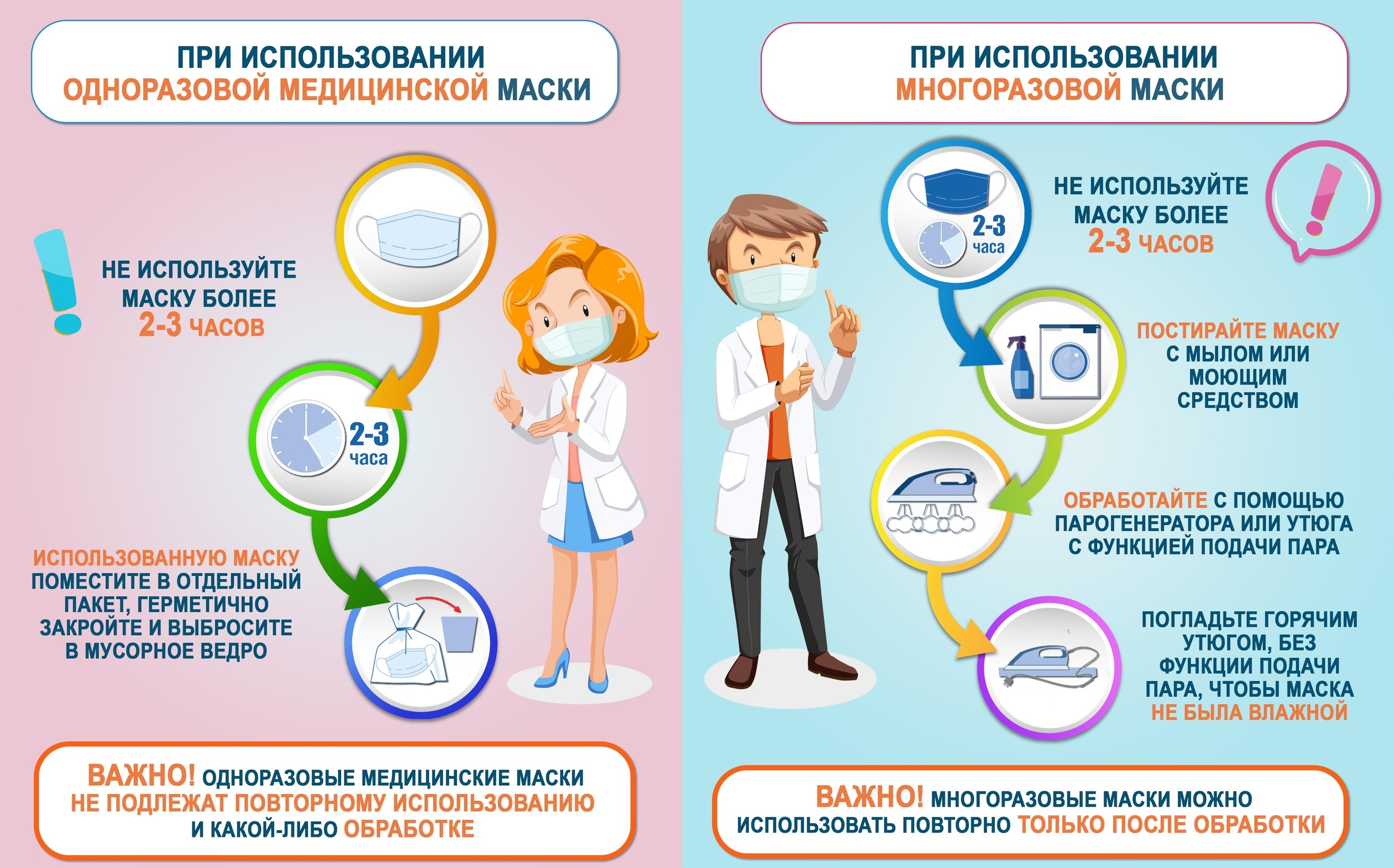 Памятка об использовании многоразовых и разовых масок !!!