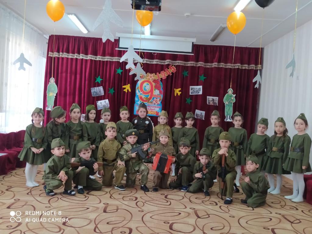 09.05.2023В целях реализации задач по патриотическому воспитанию дошкольников,формирования духовно-нравственных качеств и воспитания уважения к памяти павших героев, 04.05.2023 г. был проведен утренник "Великий праздник - День Победы" с детьми старшей группы "Непоседы". Дети были нарядно одеты, зал празднично украшен. Воспитанники группы принимали активное участие: показали свои спортивные способности, пели песни, читали стихи,исполняли танцы